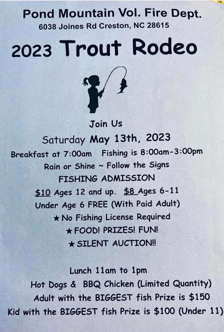 Upcoming Events: 2023 PMVFR Trout Rodeo – Saturday May 13th